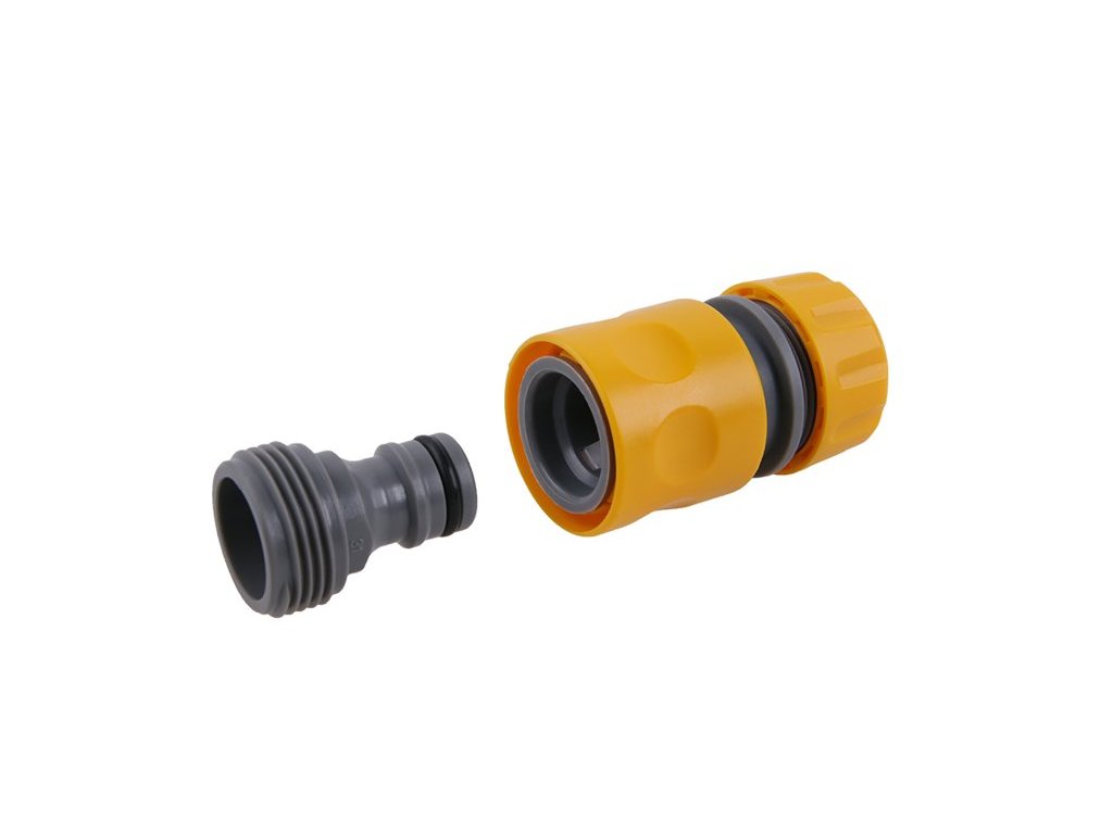 sada rychlospojka ROSA pro 1/2" zahradní hadici a adapter s vnějším závitem 3/4" kvalitní ABS plast i zpracování tříbodový zjišťovací rychlospojný systém oproti levnějším dvoubodovým - drží rychlospojku lepe v ose a pevněji lepší těsnost maximální tlak 1030 kPa