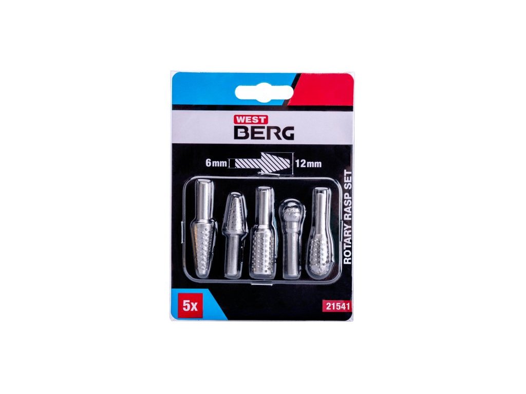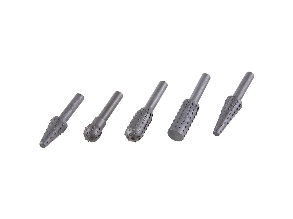 Rotační rašple - sada 5kusů, stopka 6 mm pro uchyt ve vrtačce - aku