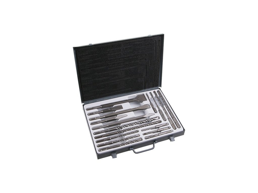 Sekáče a vrtáky SDS + - sada 17 kusů, kvalitní kombinovaná sada sekačů a vrtáků s úchycením v elektrických vrtacích kladivech SDS + (ve strojích s úchytem SDS MAX lze kombinovat s adapterem položka č. 20744), složení : 5, 6, 8 * 110mm - 6, 8, 10, 12 *160 mm - 8, 10 * 210 - 12, 14 *260 mm , použití : sekáče - pro bouraní, sekaní betonu, zdiva, dlažeb…., vrtáky - pro příklepové vrtání do betonu, zdiva, dlažby, kameniny...., balení : odolný plechový box.