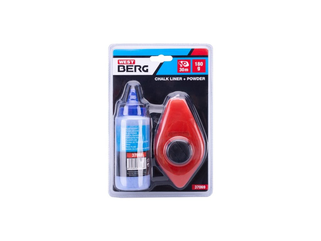 Sada navíječ a pudr, délka provazu - 30 m, hmotnost pudru 180 g, použití : označení přechodů - linií ve stavebniství ,malířství, SDK,..., po naplnění přiloženým pudrem ( modrý - lze doobjednat : modrý 37096, světle-modrý 37094, červený 37097, světle-červený 37095, černý 37098), postup : přiloženým pudrem naplníme navíječ, protřepáním a opakovaným vysunutím a opětovným navinutím provazku jej probarvíme, po-té ve dvou napneme provázek v potřebném místě vyznačení linie a lehve brnkneme - tím se pudr zachycený na provázku nanese v tenké vrtstvě na značený materiál, pak provázek navineme, popř. opět doplníme pudrem, balení: blistr s eurootvorem.