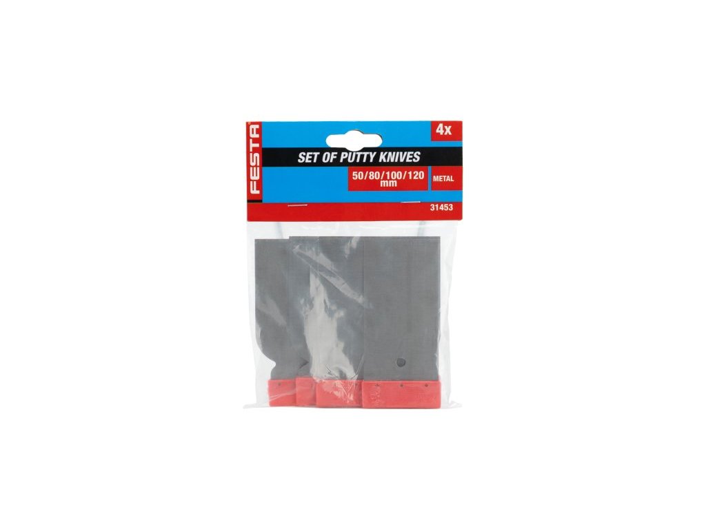 Sada stěrek japonských ocelových 4 ks 50, 80, 100, 120 mm FESTA. Ocelový břit, plastová rukojeť.