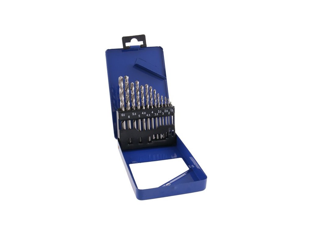 Sada vybrušovaných vrtáků HSS-G, splňující normu DIN 338, RN, vrtáky jsou vyrobené z vysoce kvalitní rychlořezné oceli (HSS), ocel je zušlechtěna legurami - Wolfram 9%, Molybden 3%, Chrom 4%, Vanadium 1% - pro vrtání ocelí do 900 N/mm. Přesné vybroušení šroubovice pro maximální výkon, přesnost a dobré středění, díky vybroušení úhlu špičky vrtáku 118° lze vrtat i bez nutnosti použití důlčíku, určené pro průmyslové použití.