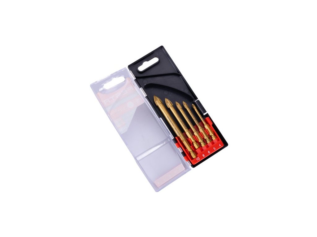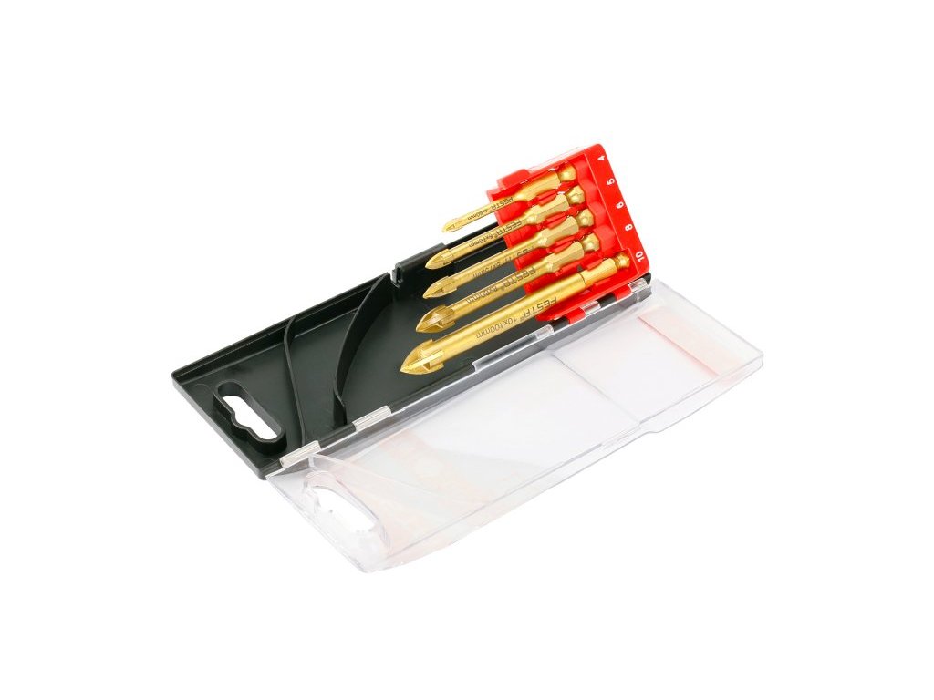 sada speciálních vrtáků pro přesné a rychlé vrtání do skla, keramiky, tvrdé dlažby a obkladů a jiných extrémně tvrdých materiálů nejen ve stavebnictví