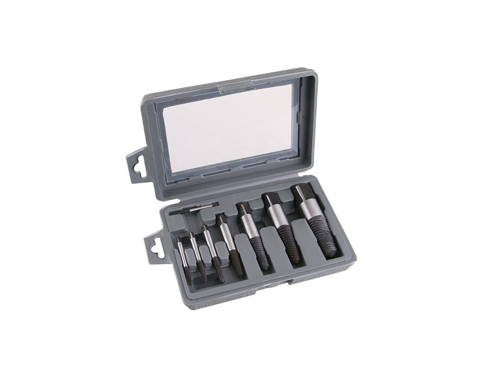 8-ti dílná sada vytahováků šroubů FESTA, použití: k vytahování zlomených a zalomených šroubů, závitových tyčí...., nutné předvrtání, díky opačné šroubovici postupným zavrtáním do otvoru dojde k vyšroubování - popř. vytočení zalomeného dílu, pro profesionální použití, pro profesionální použití, rozměry: 4, 4.5, 6.5, 7.5, 11, 15, 19, 24 mm, praktický plastový box pro uložení.
