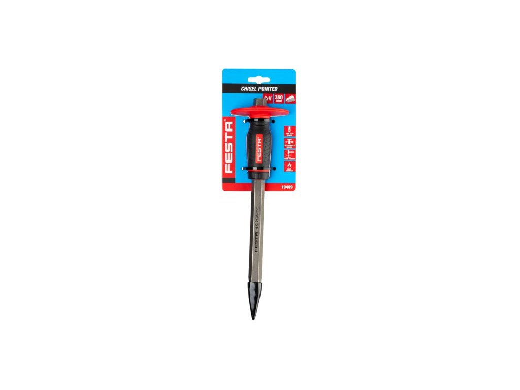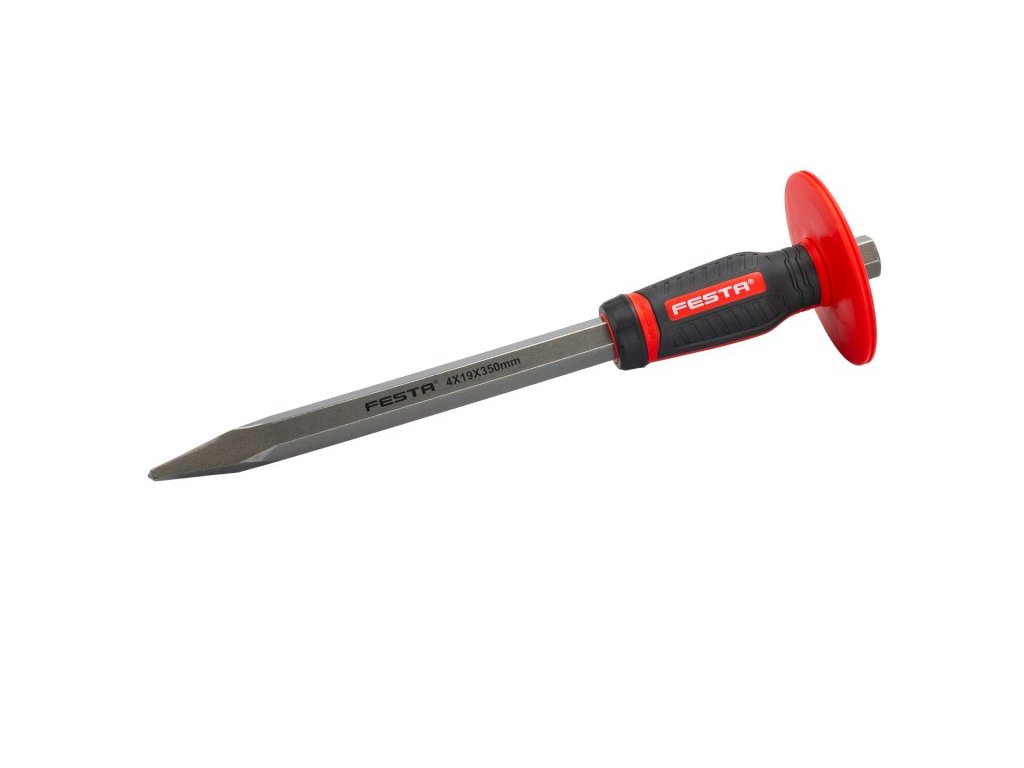 Sekáč (majzlík, majzl) špičatý s plastovou ochranou. Materiál chrom-vanadium. Vhodný pro práci s kamenem, cihlou, stavebním materiálem.