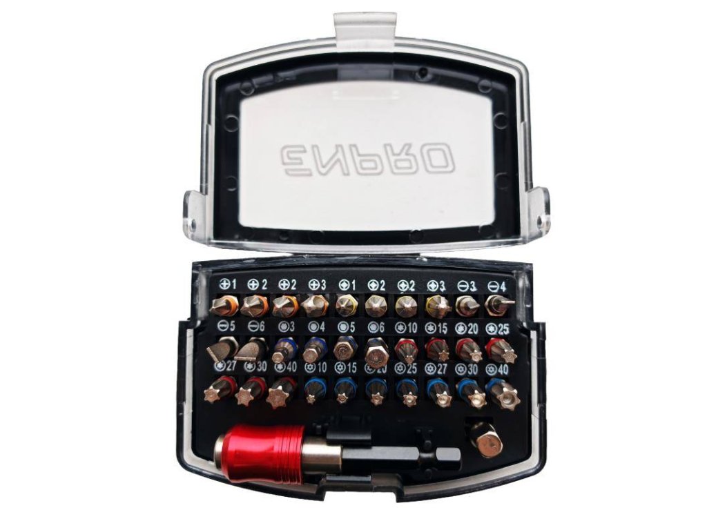 - sada bitů ENPRO + magnetický rychloupínací nástavec v plastovém pouzdře - 32 ks