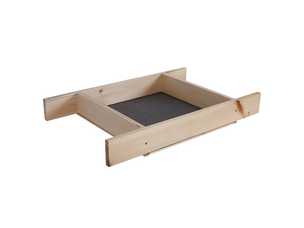 Síto na prosívání štukových omítek a jiných, dřevěný rám, síto o velikosti oka 4 mm.