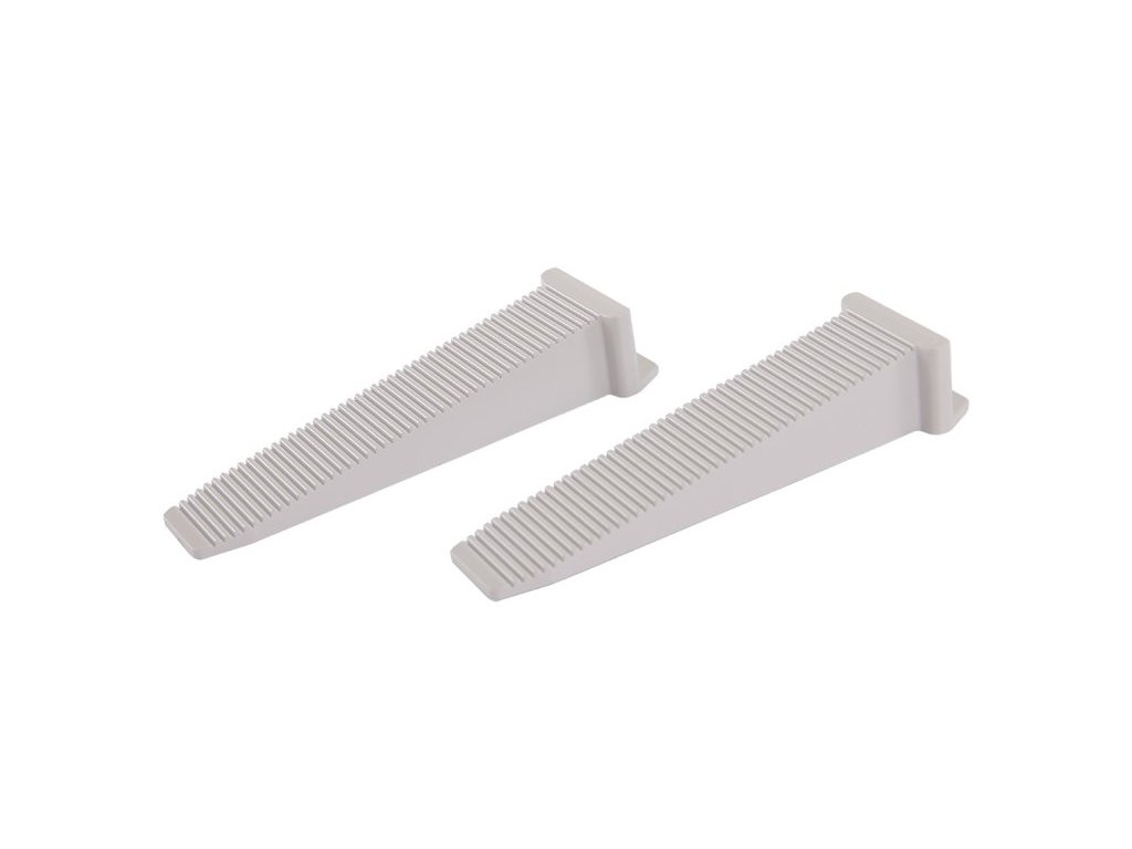 nivelační systém pro přesnou pokládku dlažby a obkladů odstraní případný výškový rozdíl mezi pokládanými dlaždicemi ve spáře nivelační systém obsahuje - distanční spony různých tlouštěk a nivelační klínky (opakovaně použitelné) aplikace - pomocí kleští 37177 šířka spony udává šířku spáry aplikace klínků pomocí kleští srovná dlaždice, po zaschnutí se horní část spony s klínkem odstraní - bílou gumovou palicí nebo ukopnutím rozměry a množství uvedeny v názvu výrobku