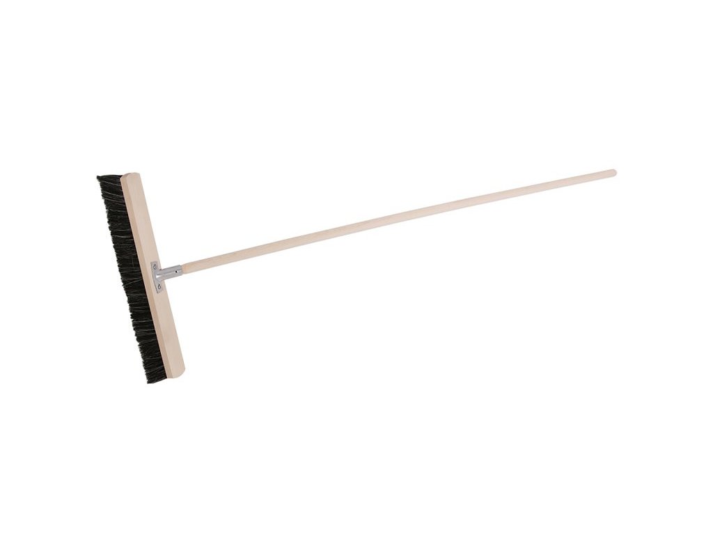 Klasický dřevěný sálový smeták s kovovým držákem pro násadu bez závitu. Vlákna z PET/žíně. Dřevěná násada průměr 22 mm, délka 150 cm.