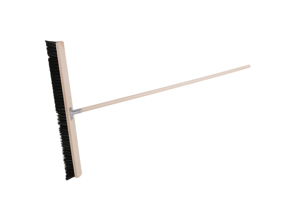 Klasický dřevěný sálový smeták s kovovým držákem pro násadu bez závitu. Vlákna z PET/žíně. Dřevěná násada průměr 22 mm, délka 150 cm.