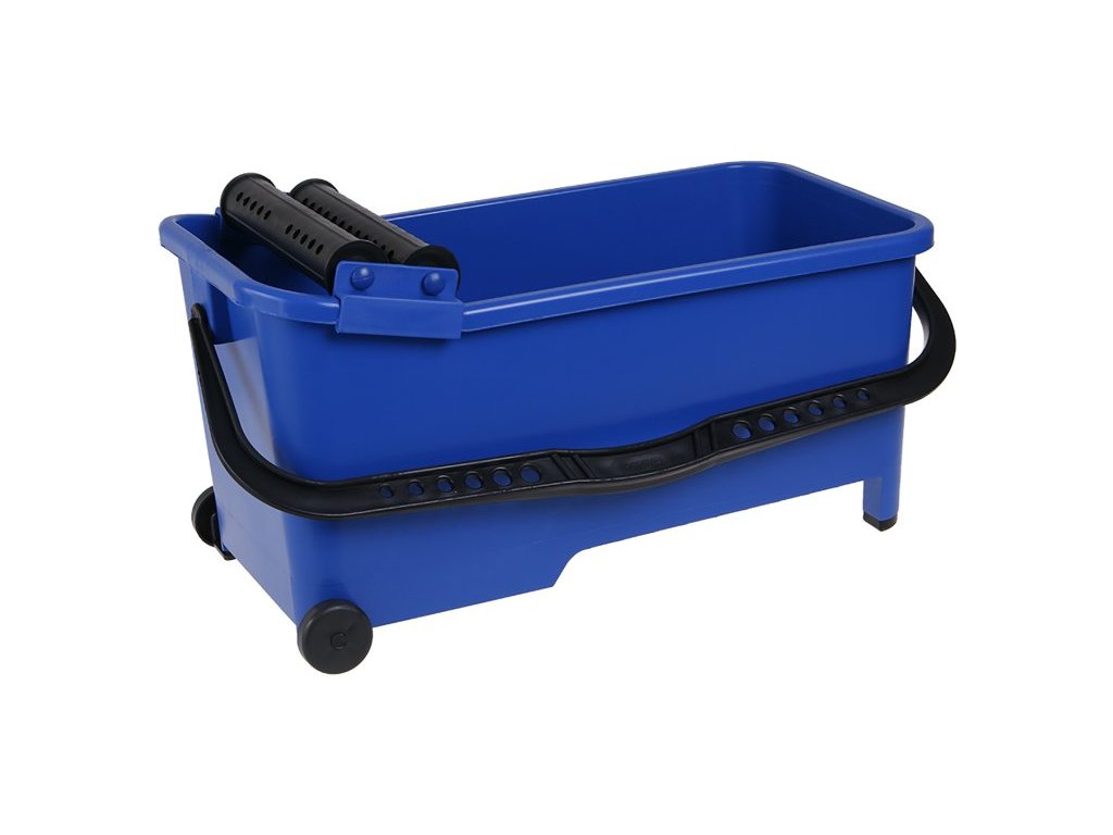 Plastový- polypropylen plastová rukojeť, mytí obkladů po spárování, dvojité plastové válečky s kolíky, které vniknou do otvorů v kbelíku a zamezí pohybu válečků po kbelíku odstranění přebytečné vody z hladítka.