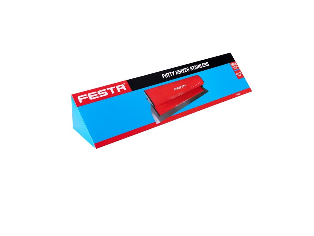 speciální špachtle pro tmelení velkých ploch bez nutnosti následného broušení - závisí také na kvalitě použitého tmelu nerezový flexibilní břit se zaoblenými rohy pro rovnoměrné nanesení a uhlazení tmele ergonomicky speciálně tvarovaná rukojeť po célé šíři špachtle pro velmi dobrý úchop a manipulaci se špachtlí