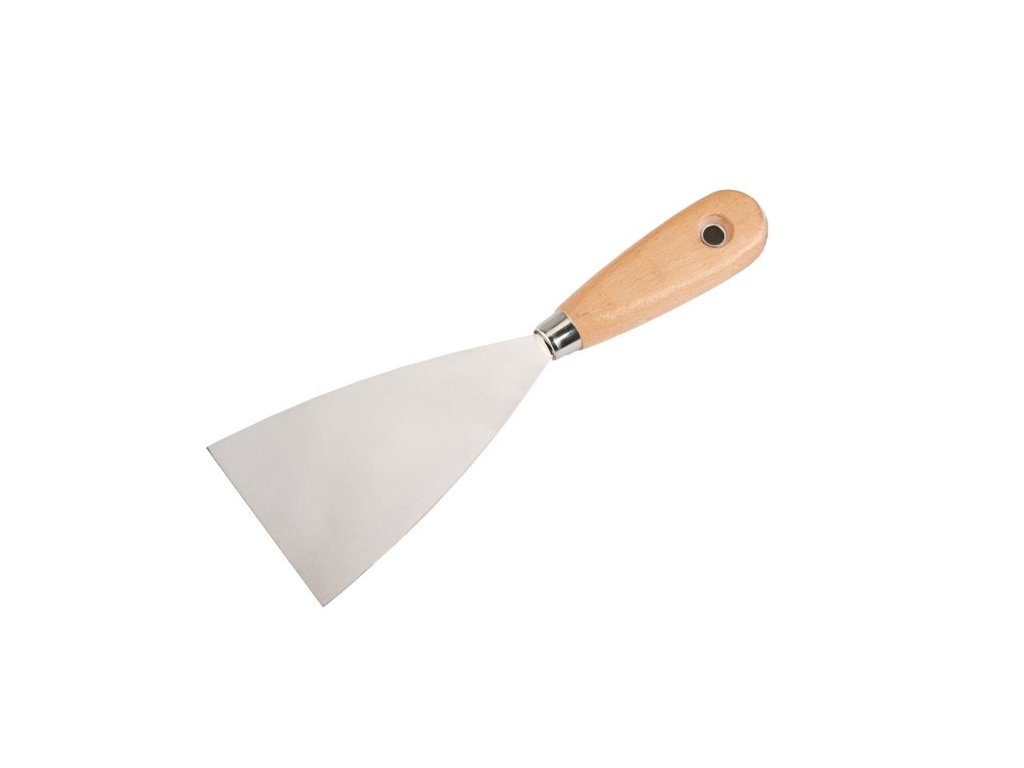 Špachtle klín nerezová FESTA 80 mm s dřevěnou ručkou. Je užíván ve štukatérství, malířství, natěračství, opravách karosérií nebo při umělecké tvorbě apod. Je vhodná pro roztírání sádry nebo jiných tmelících hmot či k odstraňování staré malby a nátěrů.