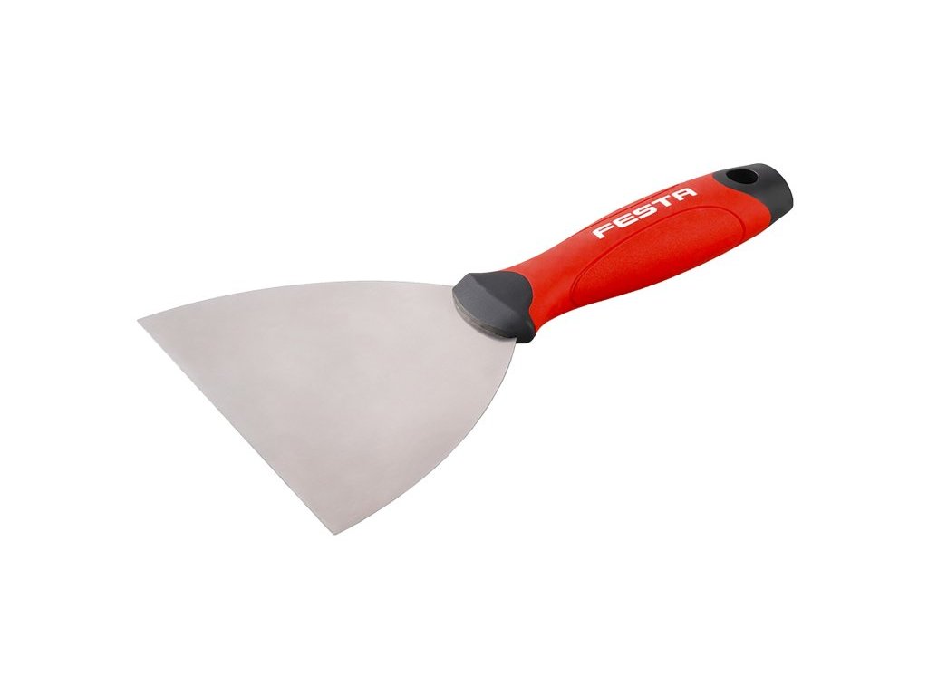 Špachtle nerezová FESTA 140 mm s ergonomicky tvarovanou gumovou ručkou. Je užíván ve štukatérství, malířství, natěračství, opravách karosérií nebo při umělecké tvorbě apod. Je vhodná pro roztírání sádry nebo jiných tmelících hmot či k odstraňování staré malby a nátěrů.