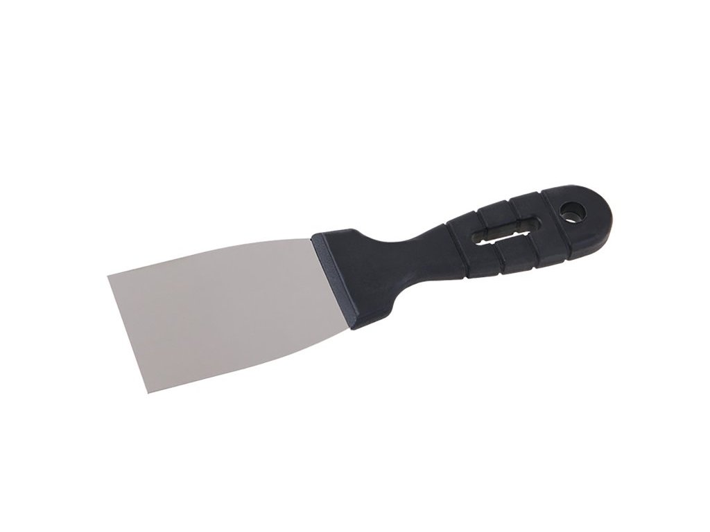 Špachtle škrábací nerezová 60 mm s plastovou ručkou. Je užíván ve štukatérství, malířství, natěračství, opravách karosérií nebo při umělecké tvorbě apod. Je vhodná k odstraňování staré malby a nátěrů.