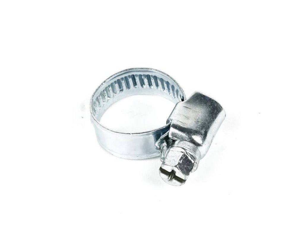- přesně uložený šroub ve svařovaném domku zajišťuje vyšší pevnost hadicové spony