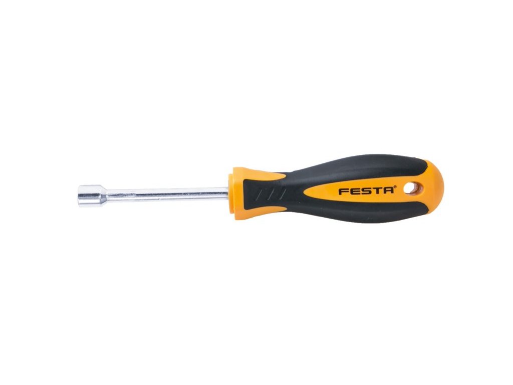 Nástrčný šroubovák FESTA má kovový dřík s nástavcem vyroben z velmi kvalitní chromvanadiové oceli , povrchově chráněný tvrdochromem, kombinace polypropylenu a pryže na ergonomicky tvarované rukojeti zaručuje výborné antiskluzové vlastnosti a dobrou odolnost vůči mazadlům a chemikáliím.