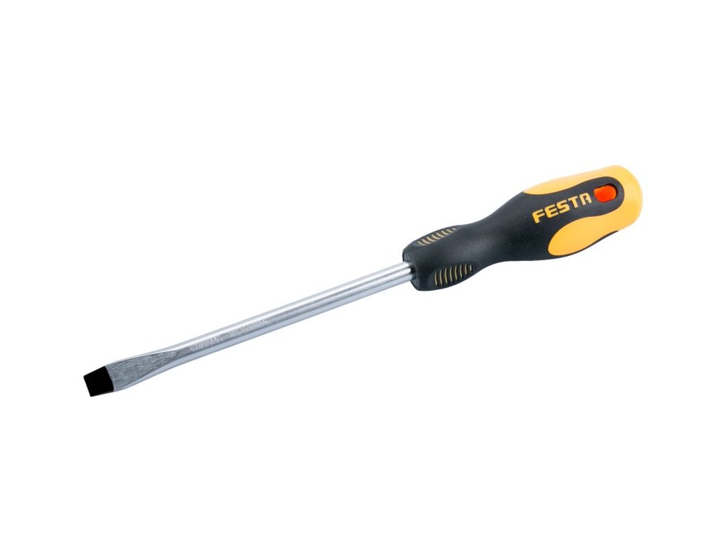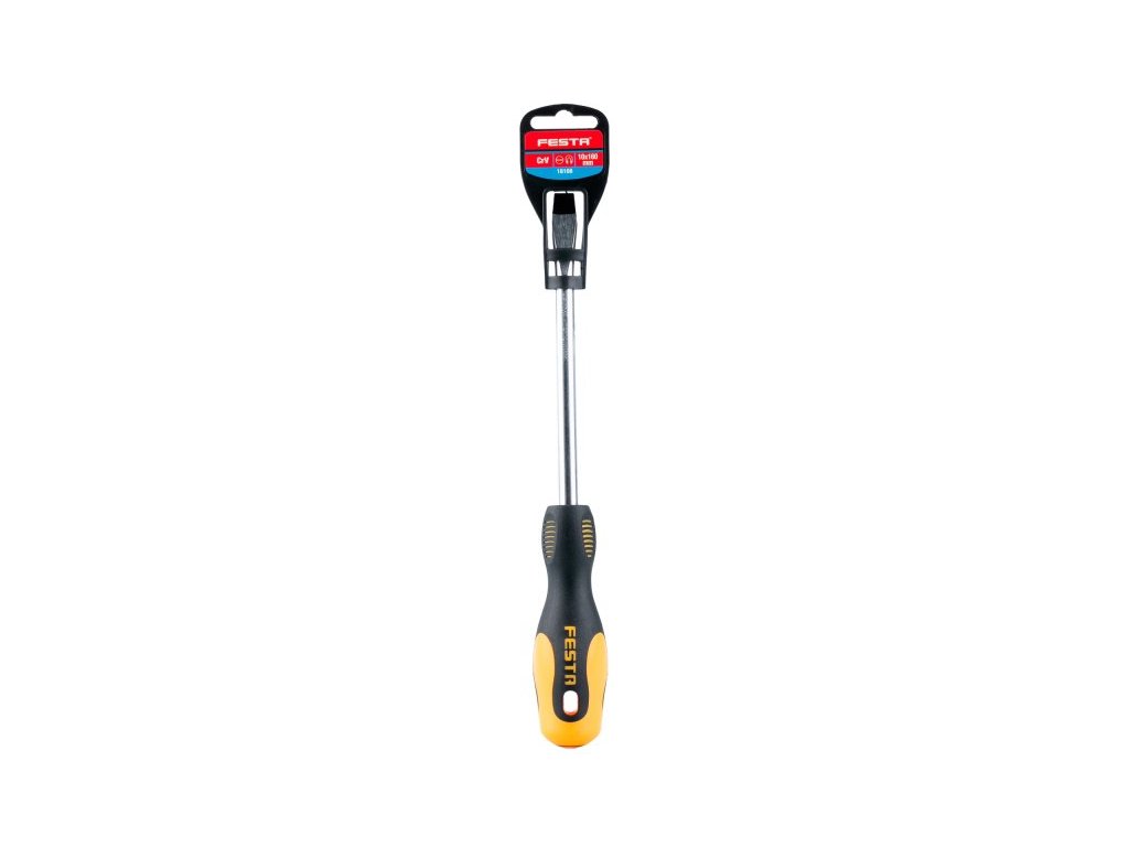 Kovový dřík šroubováku je vyroben z kvalitní chromvanadiové oceli, kalený hrot je magnetický, kombinace polypropylenu a pryže na rukojeti a její ergonomický tvar zaručuje dobré antiskluzové vlastnosti a dobrou odolnost vůči mazadlům a chemikáliím