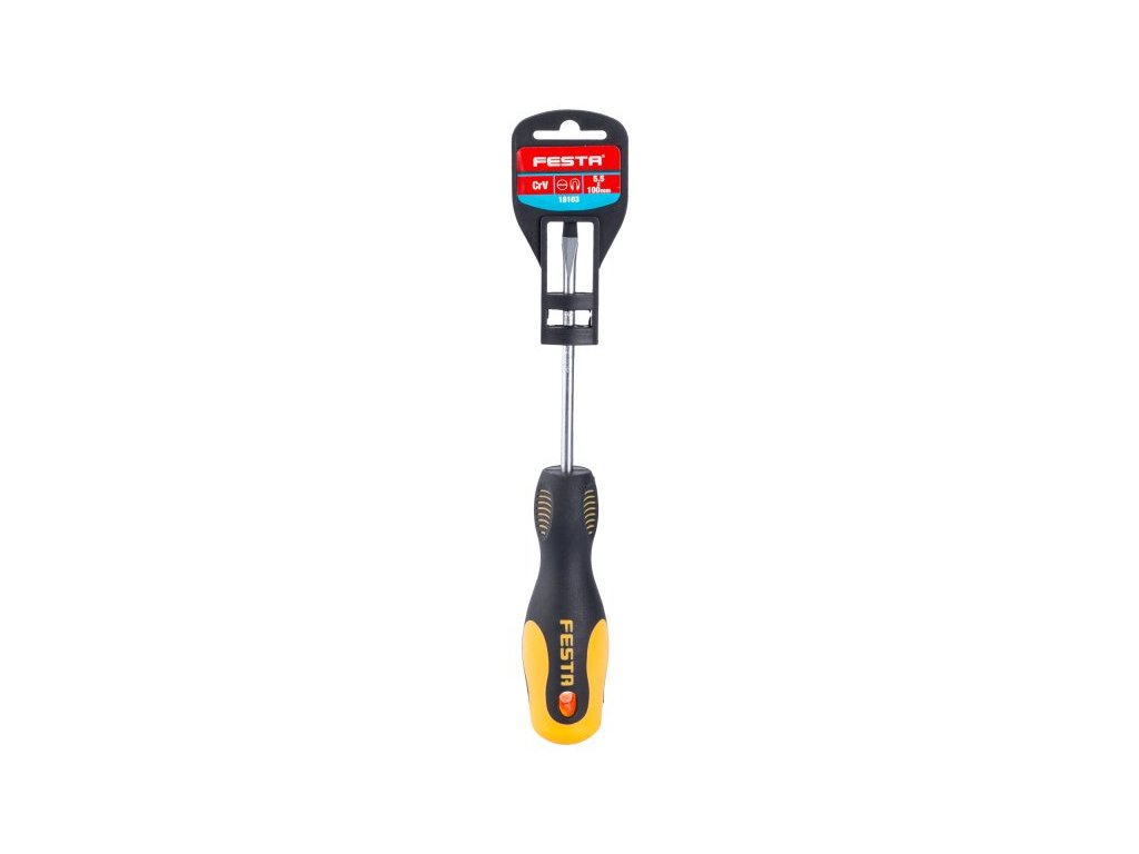 Kovový dřík šroubováku je vyroben z kvalitní chromvanadiové oceli, kalený hrot je magnetický, kombinace polypropylenu a pryže na rukojeti a její ergonomický tvar zaručuje dobré antiskluzové vlastnosti a dobrou odolnost vůči mazadlům a chemikáliím