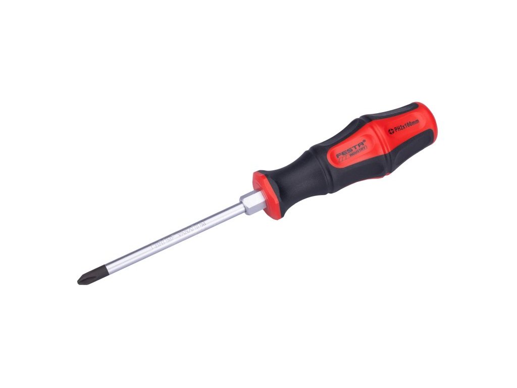 Kovový dřík šroubováku FESTA je vyroben z kvalitní chromvanadiové oceli, kalený hrot je magnetický, dřík šroubováku je pevně spojen s úderovou koncovkou, u rukojeti je šestihran pro použití klíče, kombinace polypropylenu a pryže na rukojeti a její ergonomický tvar zaručuje dobré antiskluzové vlastnosti a dobrou odolnost vůči mazadlům a chemikáliím.