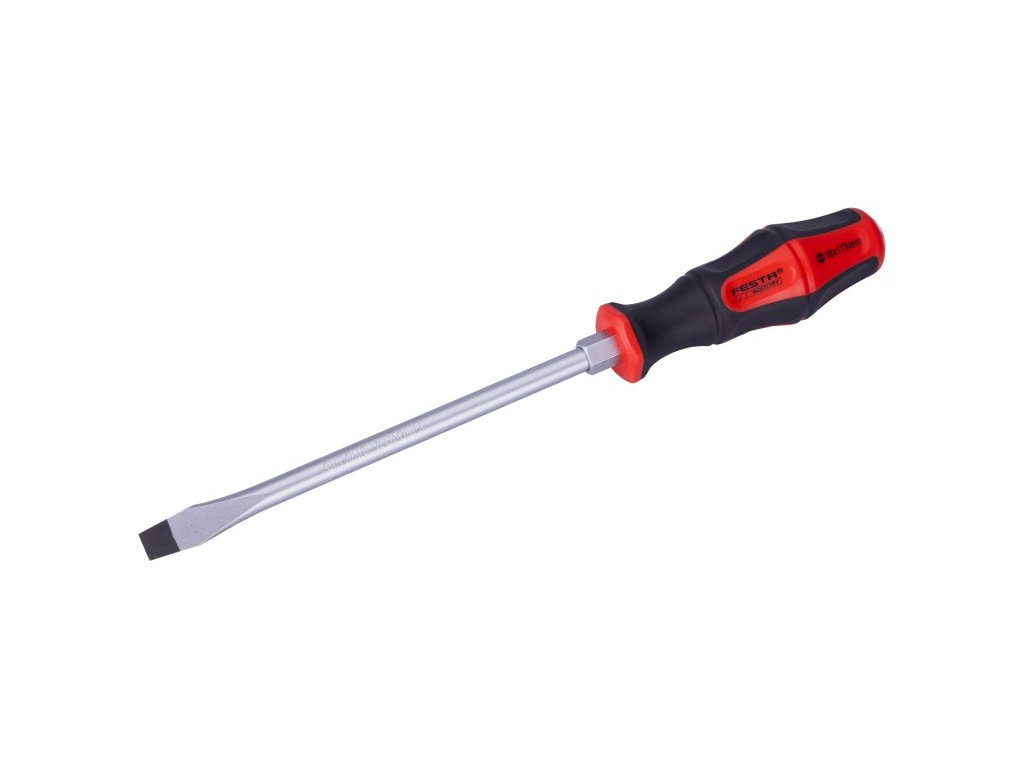 Kovový dřík šroubováku FESTA je vyroben z kvalitní chromvanadiové oceli, kalený hrot je magnetický, dřík šroubováku je pevně spojen s úderovou koncovkou, u rukojeti je šestihran pro použití klíče, kombinace polypropylenu a pryže na rukojeti a její ergonomický tvar zaručuje dobré antiskluzové vlastnosti a dobrou odolnost vůči mazadlům a chemikáliím.