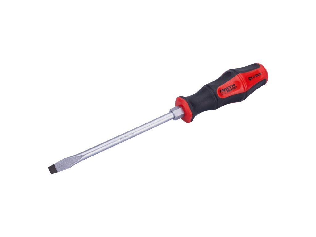 Kovový dřík šroubováku FESTA je vyroben z kvalitní chromvanadiové oceli, kalený hrot je magnetický, dřík šroubováku je pevně spojen s úderovou koncovkou, u rukojeti je šestihran pro použití klíče, kombinace polypropylenu a pryže na rukojeti a její ergonomický tvar zaručuje dobré antiskluzové vlastnosti a dobrou odolnost vůči mazadlům a chemikáliím.