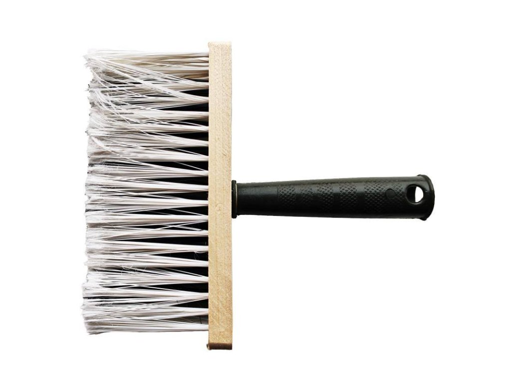 štětka s dřevěným základem a plastovou rukojetí