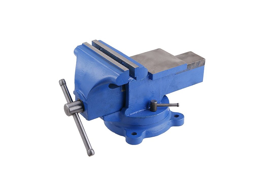Masivní svěrák s kovadlinkou z litiny, tvrzené čelisti, otáčení svěráku pomocí otočného talíře, tělo a pohyblivé rameno odlité každé z jednoho kusu zaručuje, velkou odolnost a pevnost, váha:12000g, Max. rozevření: 120mm.