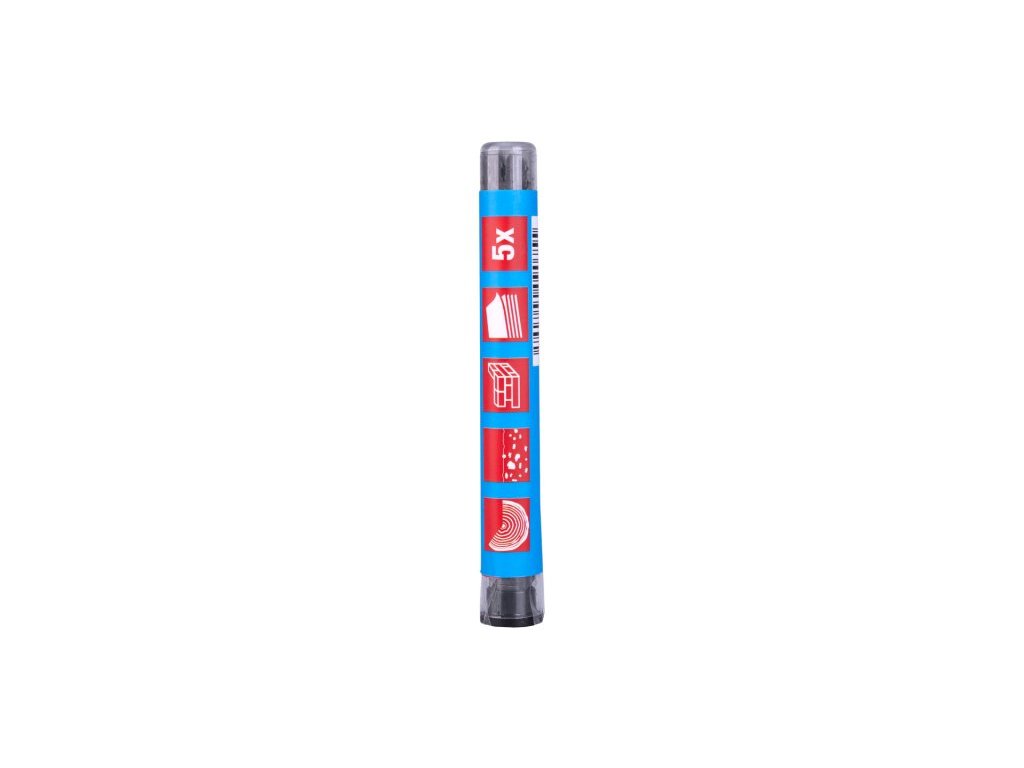 je opět ostrý hrot. Klasická tvrdost tuhy - HB. Ochranný plastový tubus s 5 kusy