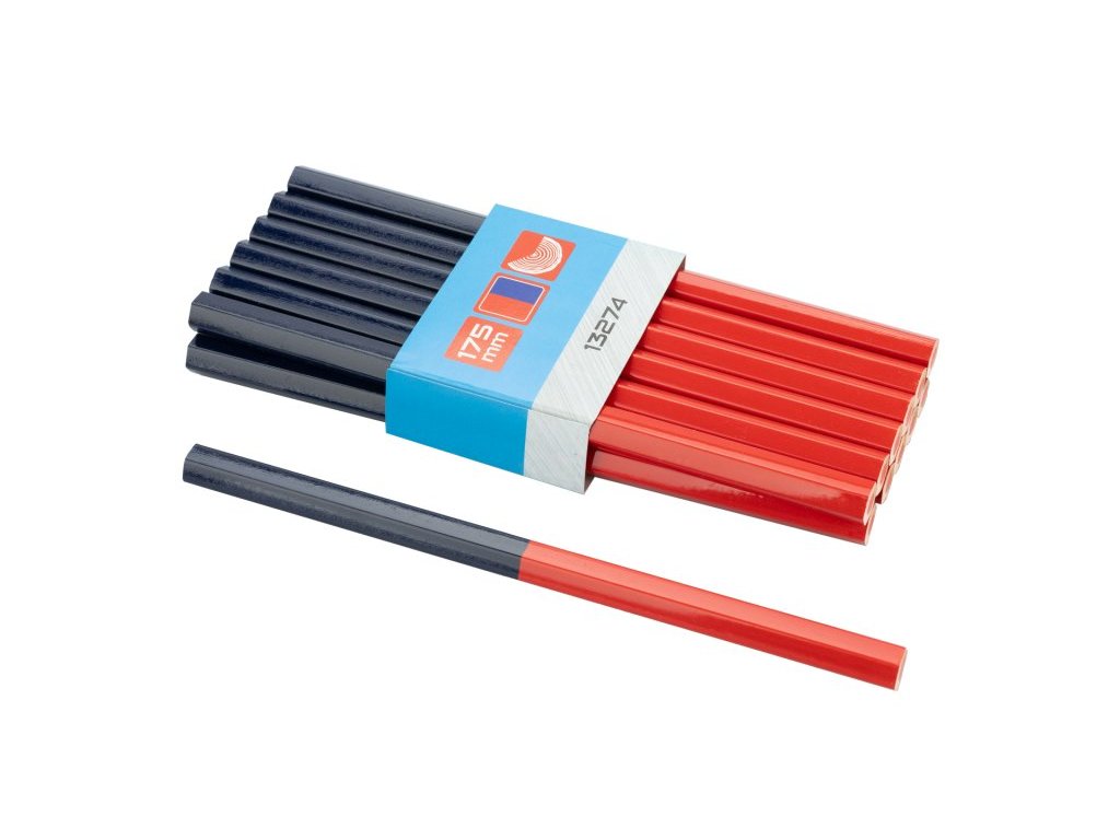 Tužka s tuhou HB - střední tvrdost, nehrocená, použití - dřevo, stavba, dvoubarevné provedení červená/modrá.
