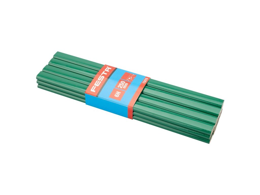 Tužka s tvrdou tuhou 6H, nehrocená, použití - kámen, stavba, zelený lak.