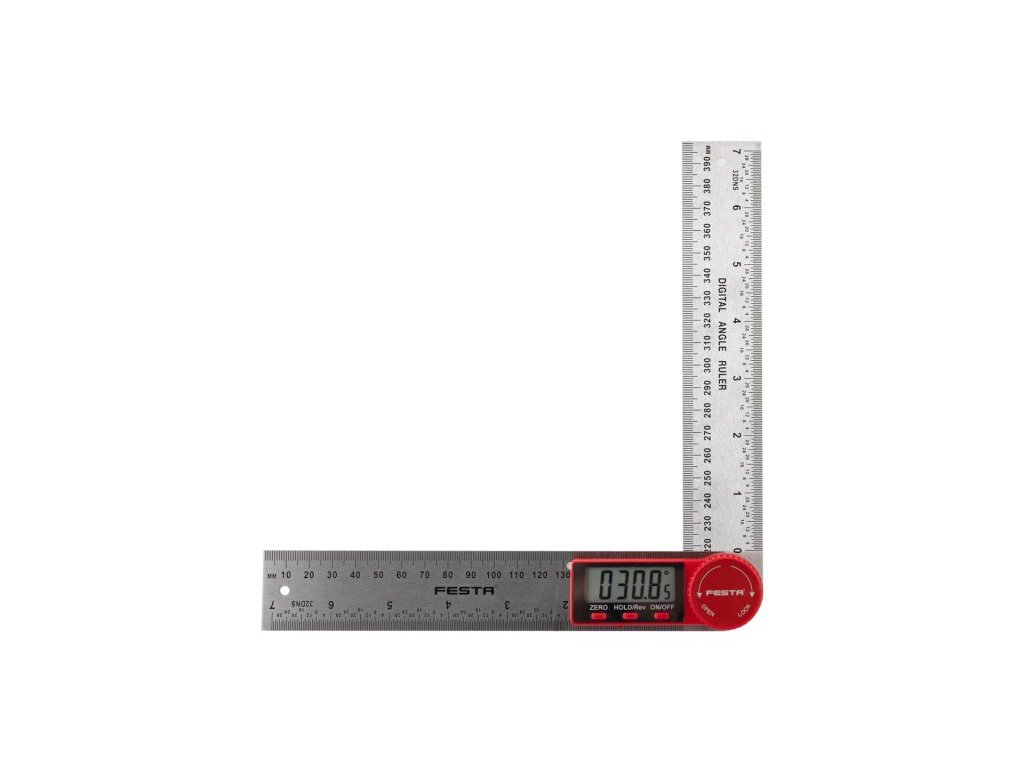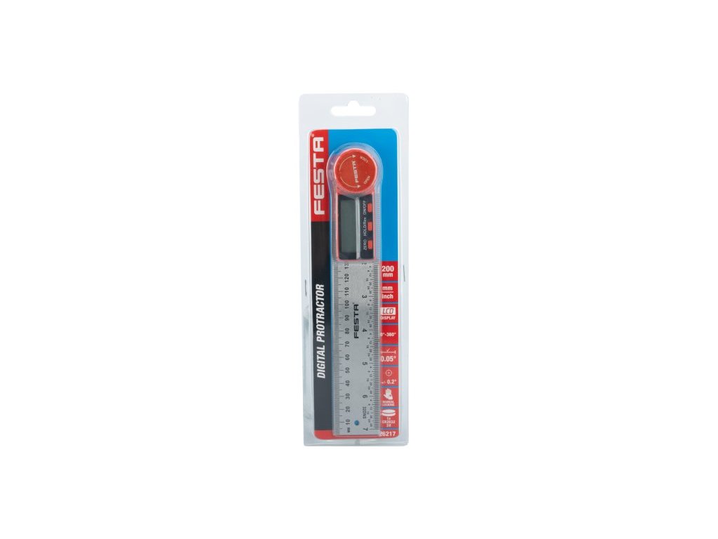 Digitální úhloměr pro měření vnitřích i vnějších úhlů. Vybaven zajišťovacím šroubem pro přidržení určitého úhlu. Měřícího rozsahu ± 360 °. Přesnost ± 0,3 °. Pracovní teplota 0-50°C. Automatické vypnutí. Nastavení nuly v libovolné poloze. Stupnice pravítka 1 mm a 1/32 palce. Průřez pravítka 35 x 2,5 mm. Dva montážní otvory. Aretace šroubek. Napájení 1 baterie typu CR2032 3V.