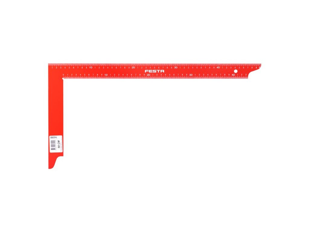 Tesařský úhelník z jednoho kusu tvrzené pružinové oceli, stupnice v mm - přesnost 0,5mm/m.