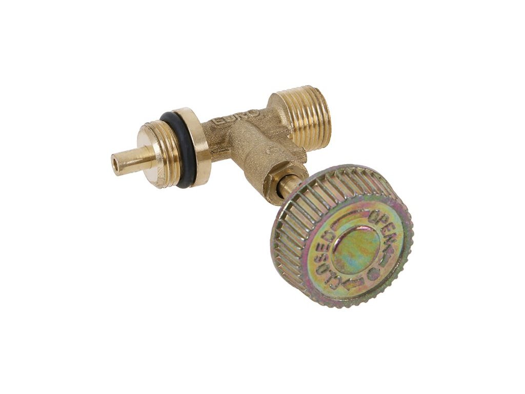 Jednocestný uzavírací ventil k 2kg propanbutanové lahvi s výstupním závitem G 3/8L. Kompatibilní k připojení hořáků a hadic.