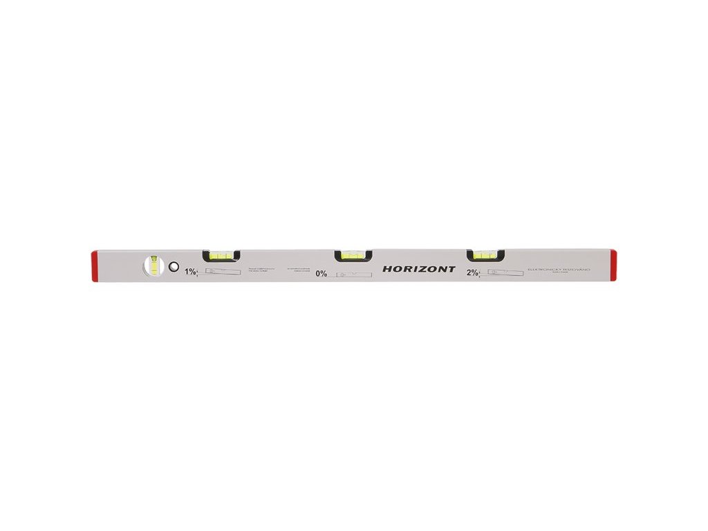 Horizont vodováha se čtyřmi libelami, přesnost 0,5mm/m = 0,0285°, eloxovaný otěruvzdorný povrch, tloušťka stěny ALU profilu 1,5mm, kapalina v libelách je UV stabilizovaná a fluorescenční, 3 horizontální libely - dvě sklonové 1 a 2%, optické horizontální libely - usnadňují a zvyšují přesnost měření, vodováha je odolná proti provozním nárazům, 10 let záruka na libely, KAŽDÝ KUS ELEKTRONICKY TESTOVÁN.