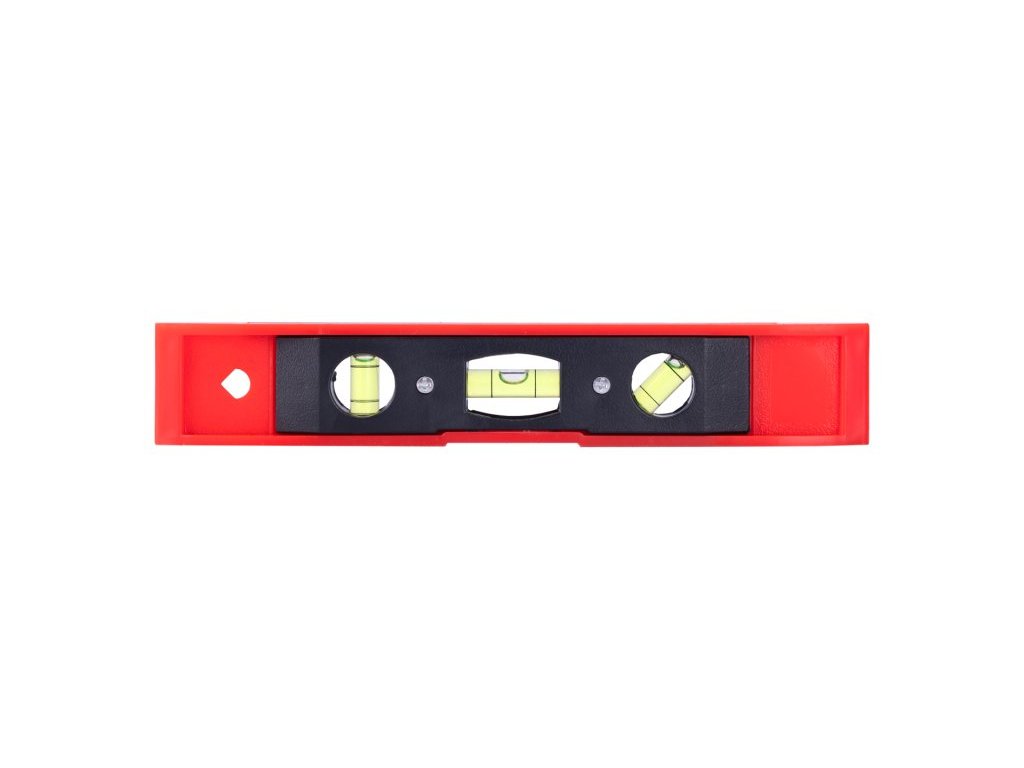 Hobby vodováha se třemi libelami a magnetickou základnou pro orientační měření.