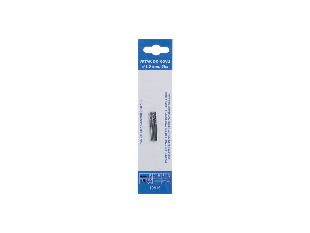 Vrták HSS DIN 338, RN, je vyrobený z kvalitní rychlořezné oceli (HSS). Přesné vyrobená šroubovice pro kvalitní výkon, přesnost a dobré středění, vybroušení úhlu špičky vrtáku 118°, pro vrtání běžné konstrukční oceli, baleno na kartách pro snadné zavěšení na prodejní stojany.