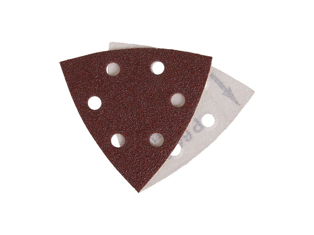 Brusný výsek se suchým zipem ve tvaru trojúhelníků 94x94x94 mm,6 odsávacích děr. Certifikace OSA, Pojivo: pryskyřice, Druh zrna: korund, Podložka: E, Použití: dřevo, ocel, neželezné kovy, barvy, laky, kůže. V balení 5 ks.