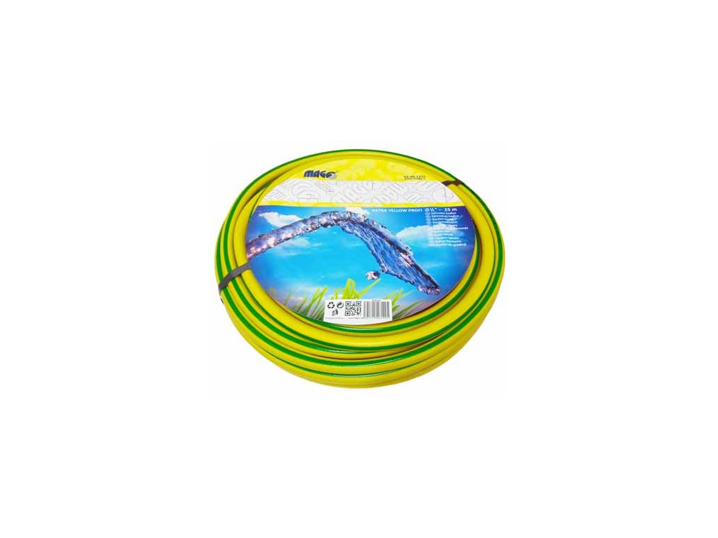 Zahradní hadice ASTRA YELLOW PROFI je kvalitní vícevrstvá PVC hadice určená pro všeobecné použití v profesionální i poloprofesionální sféře. Konstrukce hadice je optimalizována pro dlouhou životnost, mechanickou odolnost a spolehlivý provoz při pravidelném zatížení.