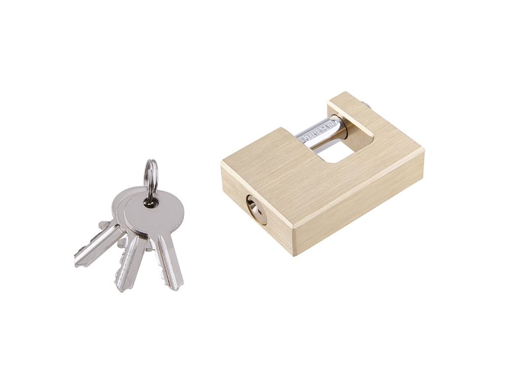 60mm zesílené mosazné tělo zámku Mosazná vložka Klíče: 2 Váha:212g Zesílený oblouk z tvrzené oceli pro lepší odolnost proti prořezání.