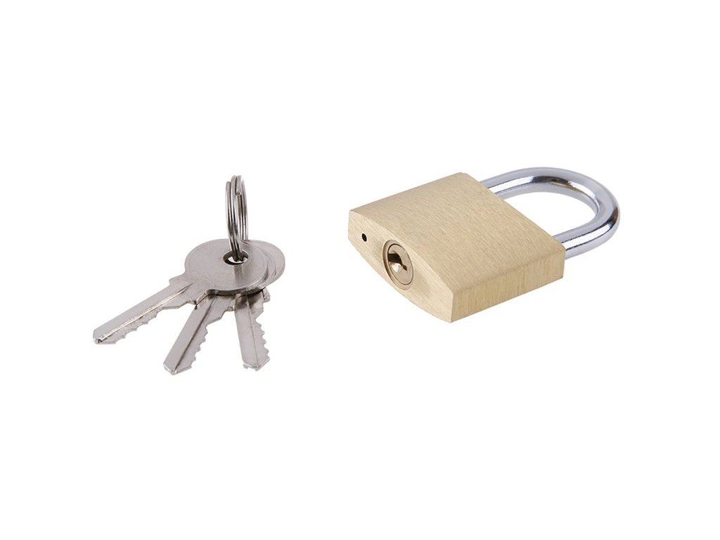 40mm zesílené mosazné tělo zámku Mosazná vložka Klíče: 3 Váha:150g Zesílený oblouk z tvrzené oceli pro lepší odolnost proti prořezání.