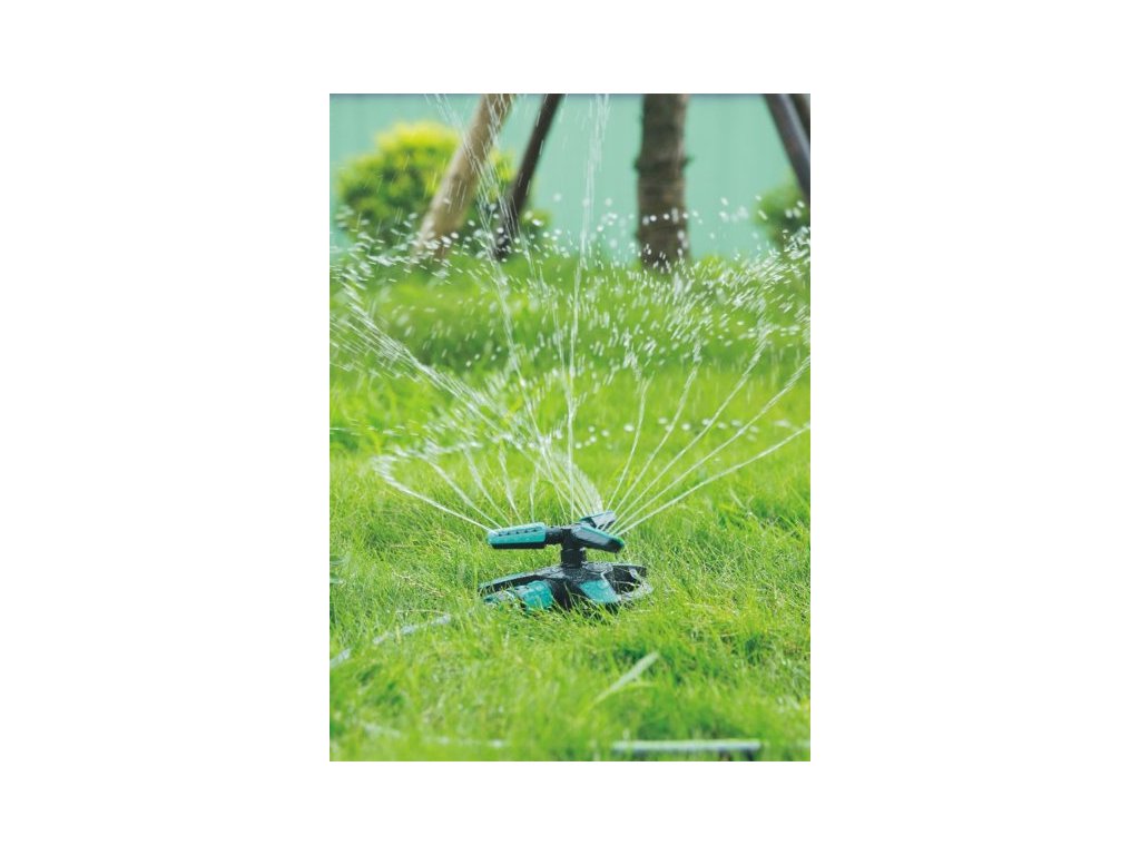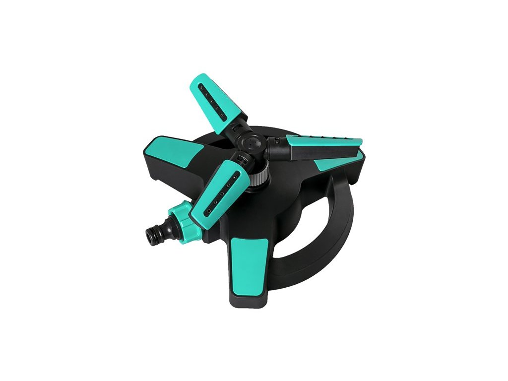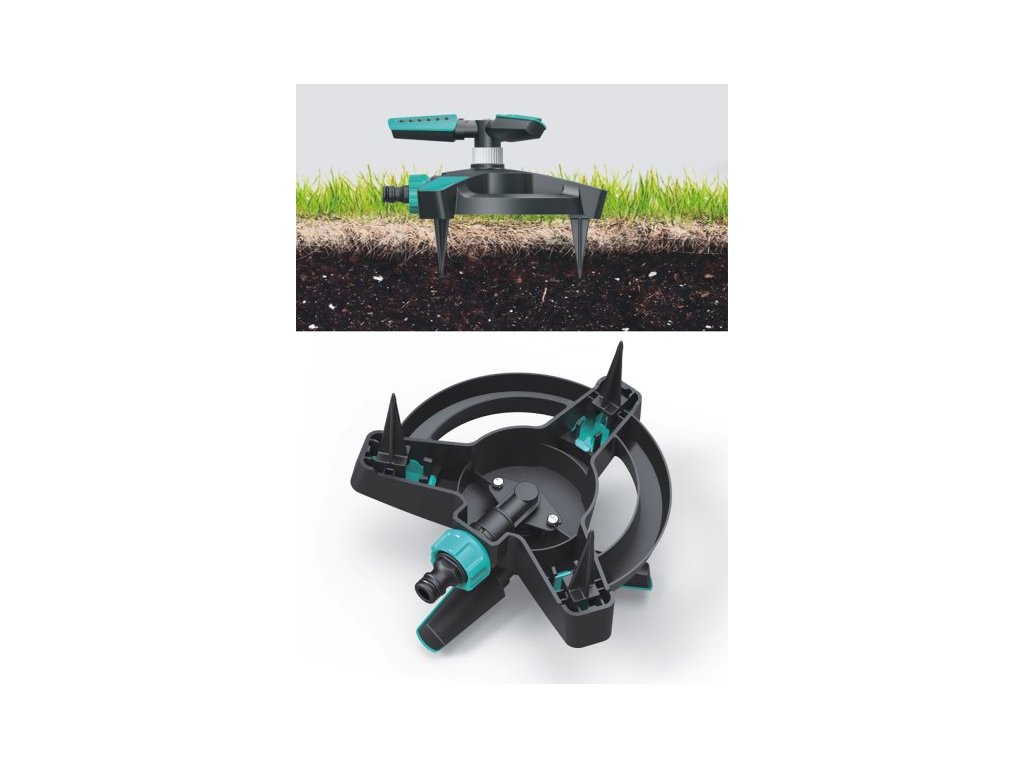 precizní úroveň zpracování a kombinace použitých materiálů řadí výrobky FESTA AQUTATIC mezi profesionální značky v zavlažování zavlažovač otočný tříramenný speciální konstrukce ramen zavlažovače umožňuje otáčením změnit úhel rozstřiku základna s výklopnými hroty pro stabilní umístění zavlažovače napojení na rychlospojku nebo STOP-rychlospojku kompatibilní s produkty ROSA