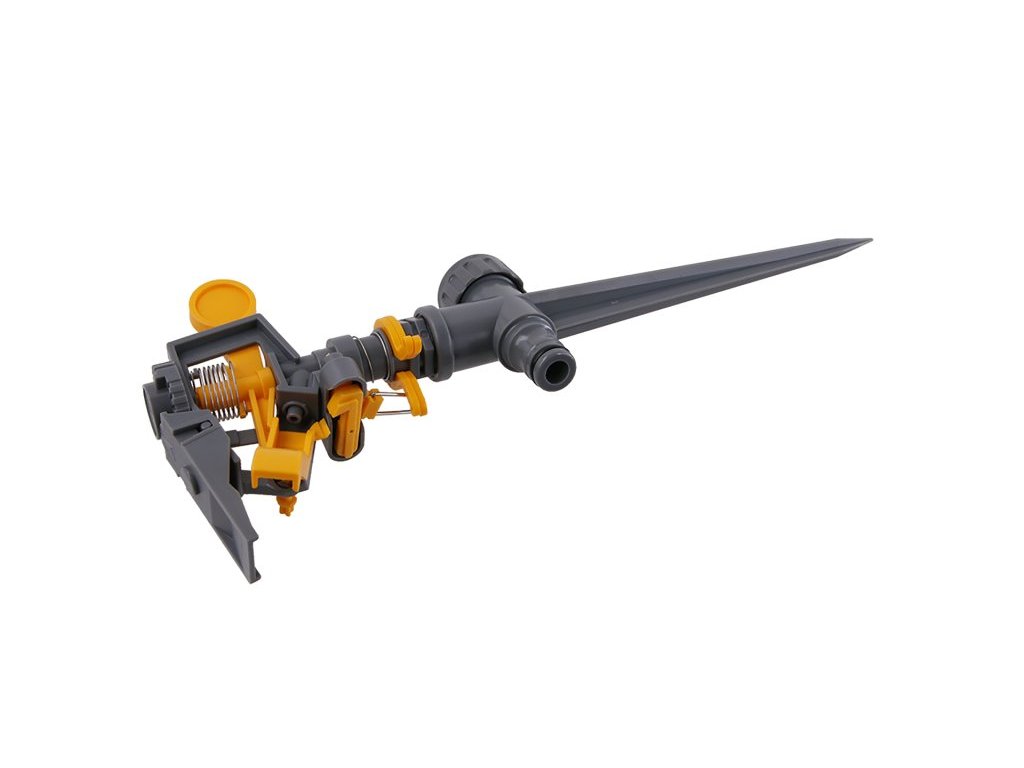 Hrotový dvoucestný impulzní zavlažovač s přípojením hadicovou rychlospojkou. Min.70 kPa a max.550 kPa.