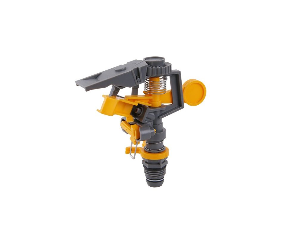 impulzní plastový zavlažovač s nastavitelným rozsahem postřiku přípojení vnějším závitem 1/2" rozstřik do 24 m, tlak vody min.70 kPa a max.550 kPa doporučené příslušenství - hrotové podstavce 45159, 45179 - v kombinaci s podstavci je možné zapojit zavlažovače do série a zavlažovat velké plochy
