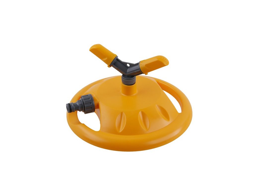 Rotační 2-ramenný zavlažovač s přípojením hadicovou rychlospojkou, min.70 kPa a max.550 kPa.