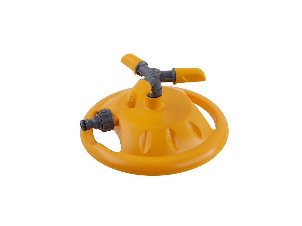 Rotační 3-ramenný zavlažovač s přípojením hadicovou rychlospojkou, min.70 kPa a max.550 kPa.