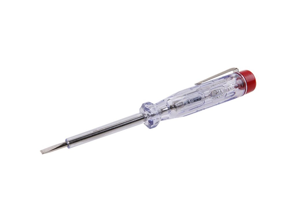 Jednoduchá fázová zkoušečka s plochým šroubovákem do 250 V. DIN VDE 0680, 73/23 EEC.