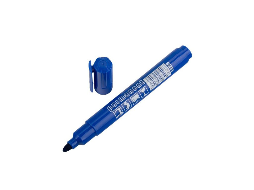 Permanentní značkovač - lihový, kulatý hrot 5 mm, modrá barva.