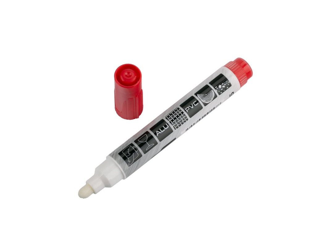 vhodný pro popisy železných konstrukcí, skla, plastů, černých strečových folií atd..