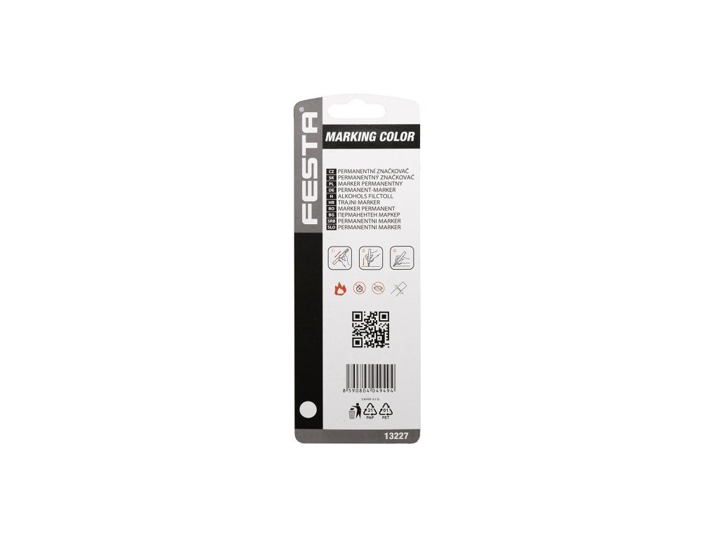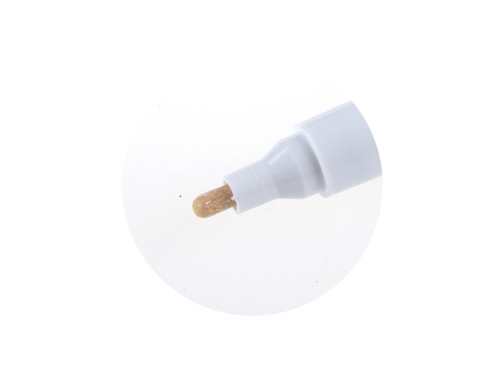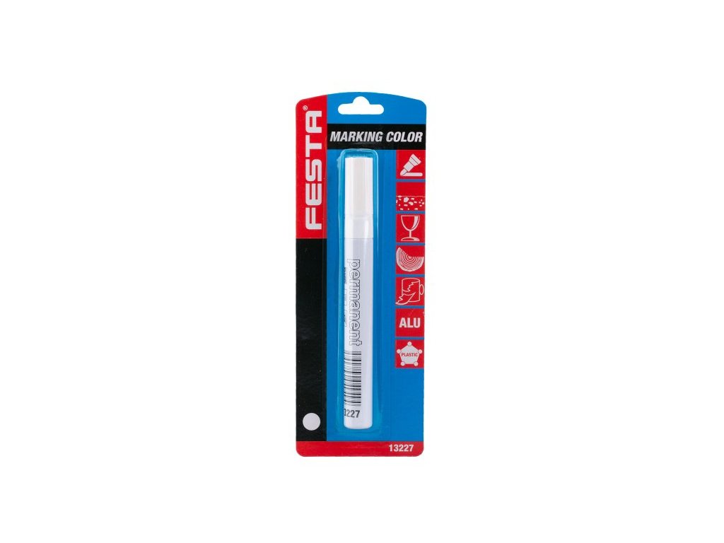 Speciální značkovací barva v hliníkovém pouzdře, síla hrozu 4 mm - bílý, popisy železných konstrukcí, skla, plastů, černých strečových folií a tmavých podkladů, max.80°C.